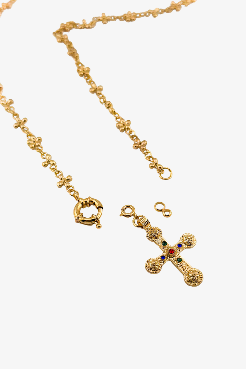 Dzięki innowacyjnemu projektowi z odpinanym krzyżem, naszyjnik oferuje nieskończone możliwości noszenia. Możesz go łatwo dostosować do swojego nastroju, umieszczając krzyż na różnych wysokościach wisiorka, co pozwala na tworzenie unikalnych stylizacji. Łącz go z inną naszą biżuterią, a zawsze osiągniesz świetny look!