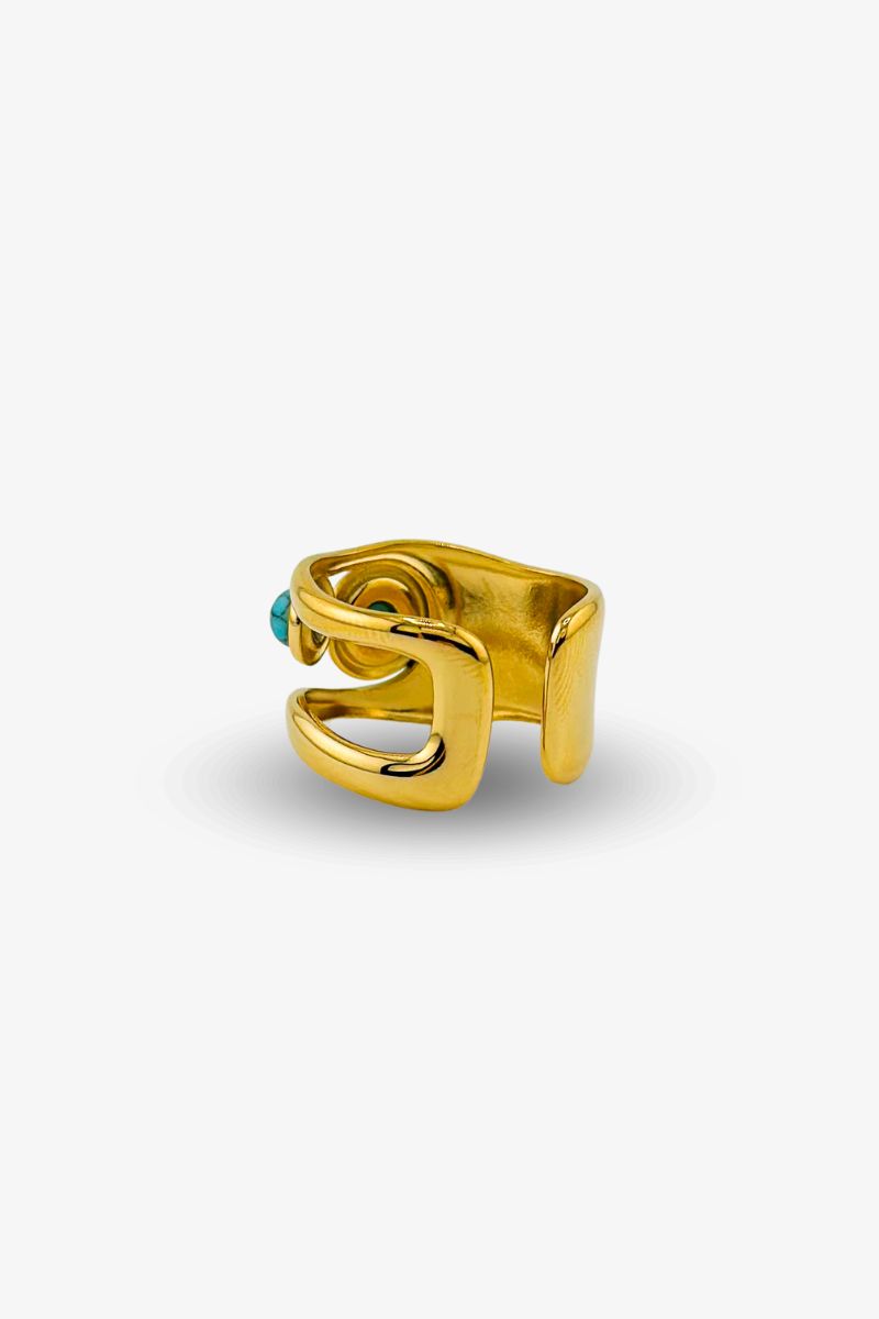 Pierścionek Double Turquoise Stone to unikalna ozdoba, która przyciąga wzrok swoim minimalistycznym designem i naturalnym pięknem. Wykonany z wysokiej jakości stali chirurgicznej platerowanej 18k złotem, wyróżnia się dwoma naturalnymi turkusami o głębokiej, niepowtarzalnej barwie. Idealny dodatek dla kobiet ceniących subtelną elegancję i wyjątkowe detale. Świetnie sprawdzi się zarówno na co dzień, jak i na specjalne okazje. 💎🌿